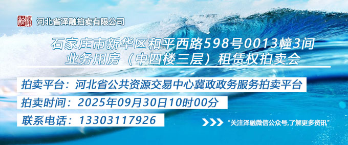 - 石家莊市新華區(qū)和平西路598號0013幢3間業(yè)務(wù)用房(中四樓三層)租賃權(quán)拍賣公告20250930